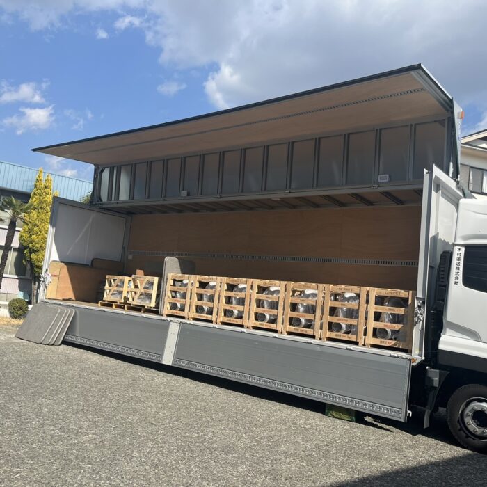 重量物輸送に適した車両で積載・走行時の安定性を確保しました。